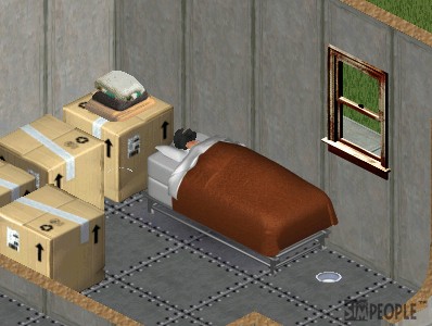 物置兼の狭い部屋でも、喜んで就寝中のジョナサン。