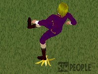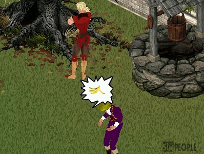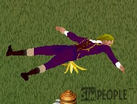 誰かが捨てたバナナの皮を気付かず踏み、転倒キース。
