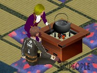 火鉢を囲んで談笑です。