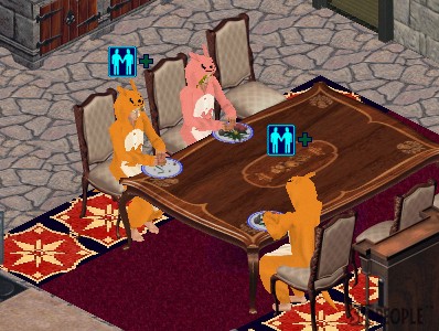 食堂にガルーのままで集う3人。