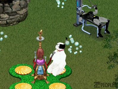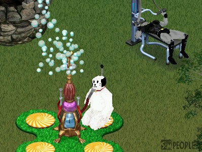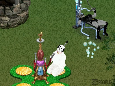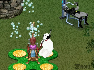 ぷわわわわ〜。飛び交うシャボン玉に見とれるニャンまげ。